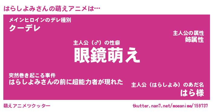 | 男性向けラノベタイトル風あだ名 | 『はらしよみの憂鬱』 |