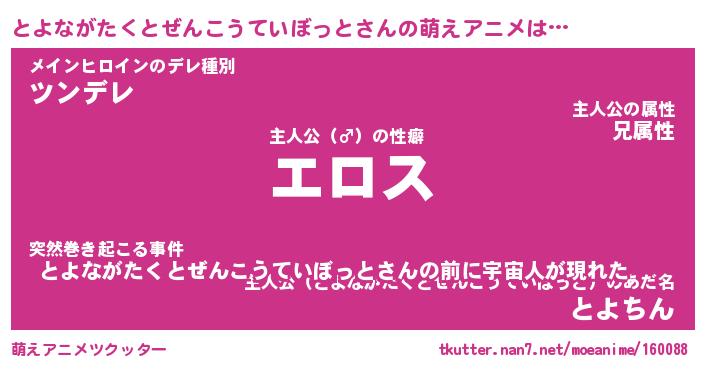 | 番長 | とよながたくとぜんこうていぼっと、またの名を・・・!『マザコンとよながたくとぜんこうていぼっとちゃん』 |