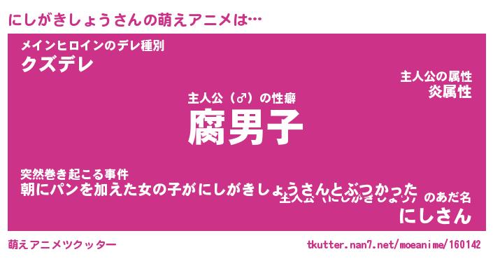 | 2回繰り返すあだ名 | 『にしにし』『ににしし』『ぬるぬる』 |