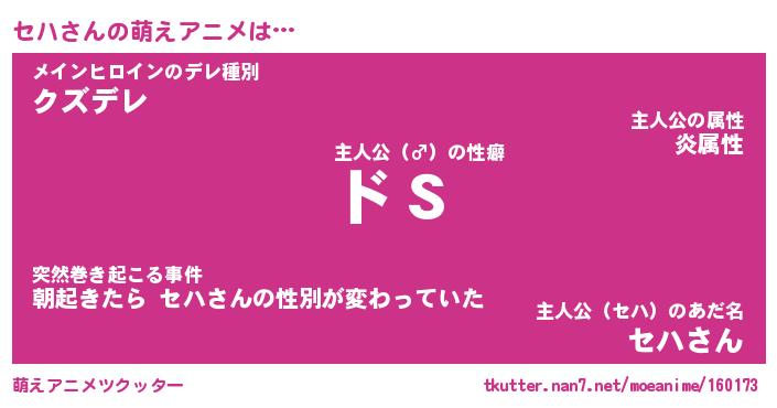| 男性向けラノベタイトル風あだ名 | 『セハの憂鬱』『ノーゲーム・ノーセハ』 |