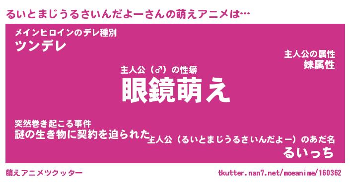 | 番長 | るいとまじうるさいんだよー、またの名を・・・!『だいたいるいとまじうるさいんだよーちゃん』 |