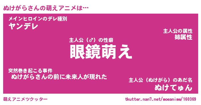| ヘコむあだ名 | 『ぬけにゅー』『なまこ酢』 |