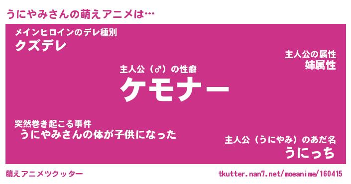 | 2回繰り返すあだ名 | 『うにうに』『ううにに』『うねうね』 |