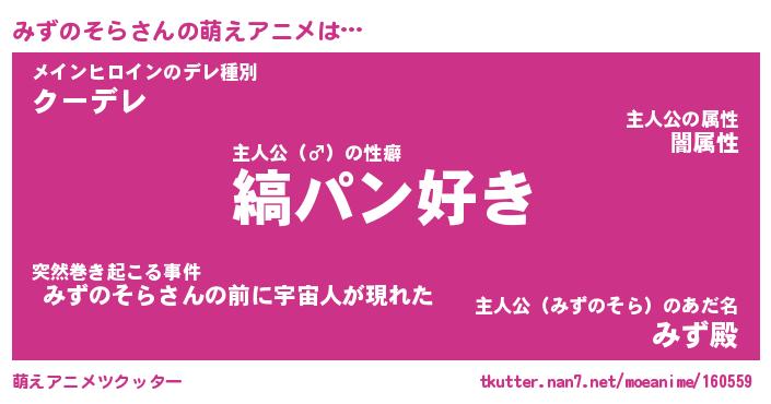 | 男性向けラノベタイトル風あだ名 | 『みずのそらの憂鬱』 |