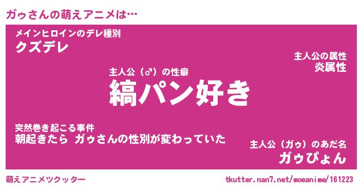 | ヘコむあだ名 | 『ガゥもー』『豆乳』『ガゥっぺ』 |