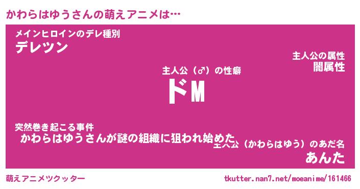 | 男性向けラノベタイトル風あだ名 | 『かわらはゆうの憂鬱』 |