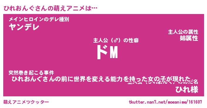 | 女子向けラノベタイトル風あだ名 | 『(仮)ひれおんぐのやんごとなき事情』 |