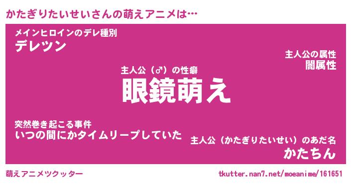 | 男性向けラノベタイトル風あだ名 | 『かたぎりたいせいの憂鬱』 |