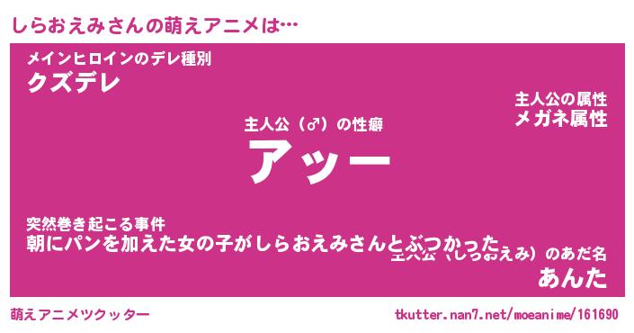 | 女子向けラノベタイトル風あだ名 | 『誰かこのしらおえみを説明してください! ~契約から始まるウェディング~』 |