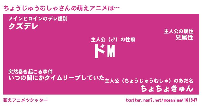| 男性向けラノベタイトル風あだ名 | 『ちょうじゅうむしゃの憂鬱』 |