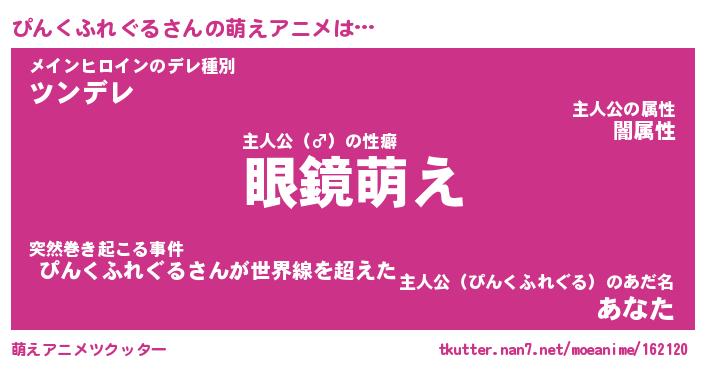| 男性向けラノベタイトル風あだ名 | 『ぴんくふれぐるの憂鬱』 |