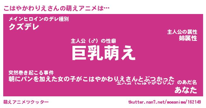 | 男性向けラノベタイトル風あだ名 | 『こはやかわりえの憂鬱』 |