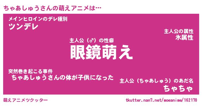 | 男性向けラノベタイトル風あだ名 | 『ちゃあしゅうの憂鬱』 |