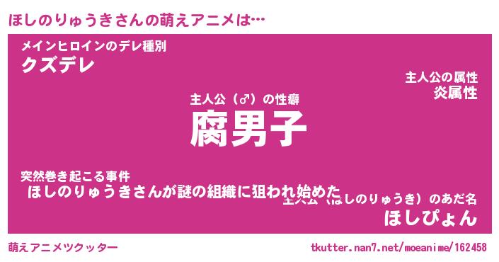 | 男性向けラノベタイトル風あだ名 | 『ホシノリュウキアートオンライン』 |