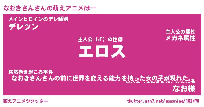 | 女子向けラノベタイトル風あだ名 | 『誰かこのなおきさんを説明してください! ~契約から始まるウェディング~』 |