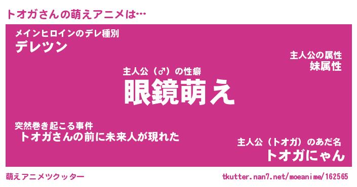 | 男性向けラノベタイトル風あだ名 | 『トオガの憂鬱』 |