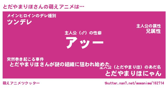 | 男性向けラノベタイトル風あだ名 | 『トダヤマリホアートオンライン』 |