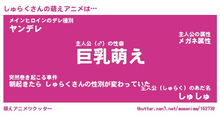 | 男性向けラノベタイトル風あだ名 | 『しゅらくの憂鬱』 |