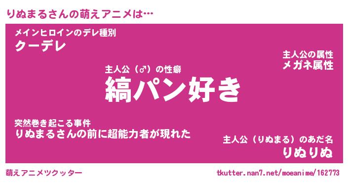 | 男性向けラノベタイトル風あだ名 | 『りぬまるの憂鬱』 |
