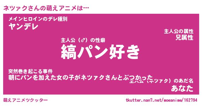 | 意味不明あだ名 | 『ペロリンネツァク』『永久保存ネツァク』 |