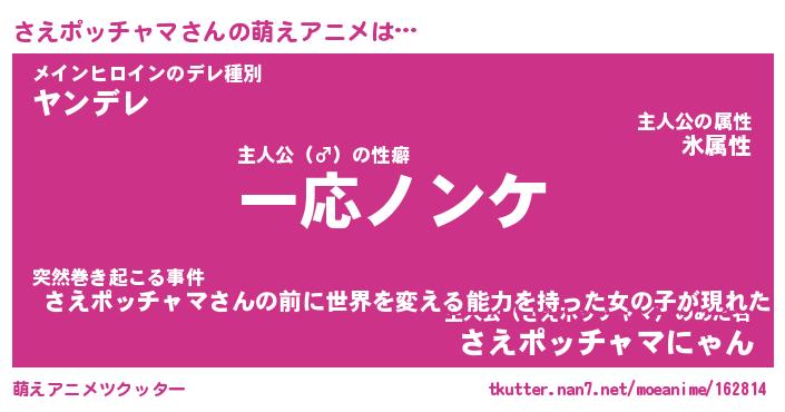 | 女子向けラノベタイトル風あだ名 | 『誰かこのさえポッチャマを説明してください! ~契約から始まるウェディング~』 |
