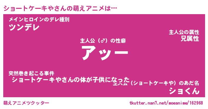 | 女子向けラノベタイトル風あだ名 | 『誰かこのショートケーキやを説明してください! ~契約から始まるウェディング~』 |