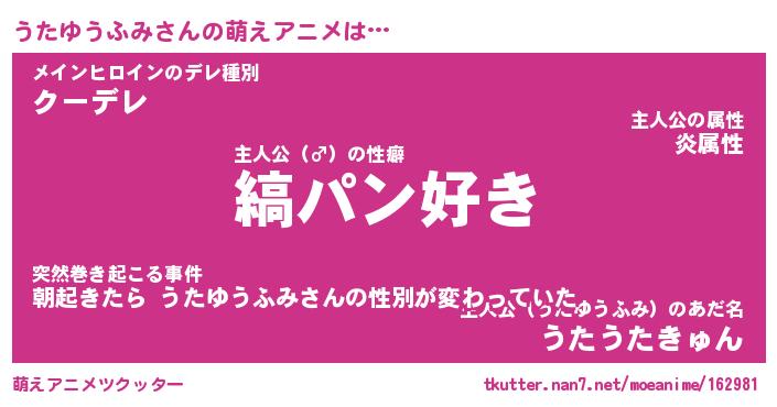 | 女子向けラノベタイトル風あだ名 | 『(仮)うたゆうふみのやんごとなき事情』 |