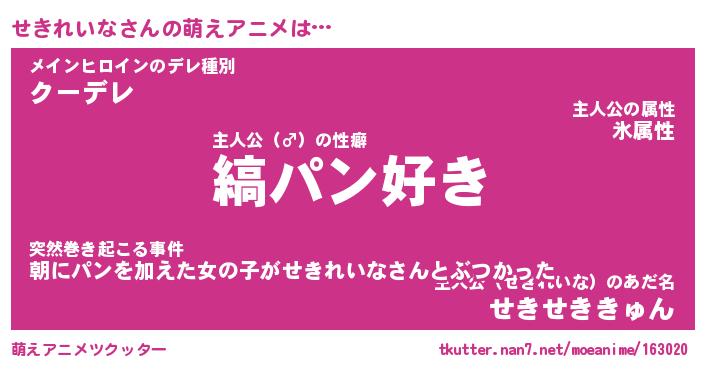 | ファンタジー風あだ名 | 『セキフェル』『エターナルセキレイナー』 |