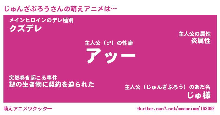 | 女子向けラノベタイトル風あだ名 | 『誰かこのじゅんざぶろうを説明してください! ~契約から始まるウェディング~』 |