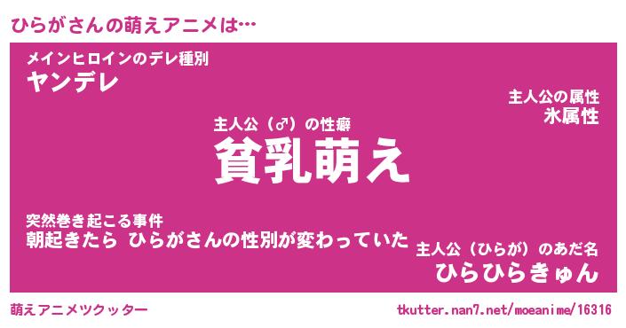 | 女子向けラノベタイトル風あだ名 | 『(仮)ひらがのやんごとなき事情』 |
