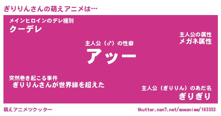 | 男性向けラノベタイトル風あだ名 | 『ギリリンアートオンライン』 |