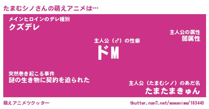 | 男性向けラノベタイトル風あだ名 | 『たまむシノの憂鬱』 |
