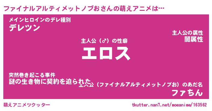 | 女子向けラノベタイトル風あだ名 | 『誰かこのファイナルアルティメットノブおを説明してください! ~契約から始まるウェディング~』 |