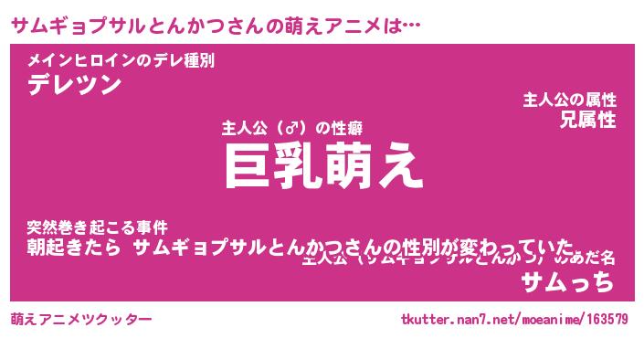 | 男性向けラノベタイトル風あだ名 | 『サムギョプサルとんかつの憂鬱』 |