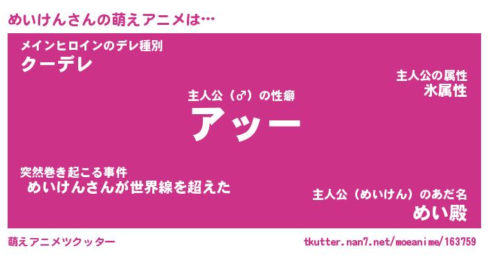 | 男性向けラノベタイトル風あだ名 | 『メイケンアートオンライン』 |