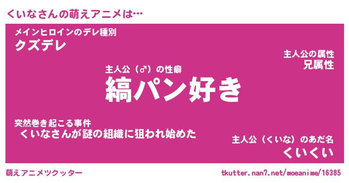 | 男性向けラノベタイトル風あだ名 | 『くいなの憂鬱』 |