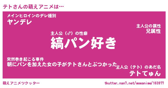 | ヘコむあだ名 | 『テトにゅー』『つくし』『テト(爆)』 |