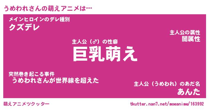 | 男性向けラノベタイトル風あだ名 | 『うめわれの憂鬱』 |