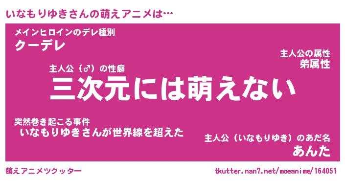 | 男性向けラノベタイトル風あだ名 | 『イナモリユキアートオンライン』 |
