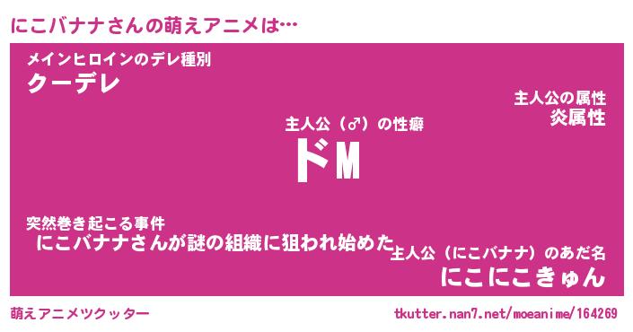 | 男性向けラノベタイトル風あだ名 | 『にこバナナの憂鬱』 |