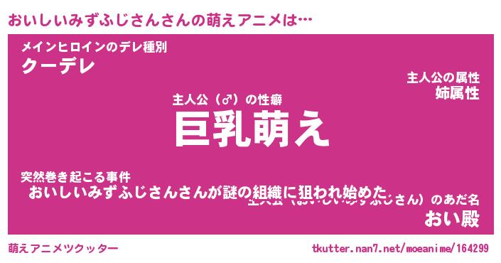 | 男性向けラノベタイトル風あだ名 | 『おいしいみずふじさんの憂鬱』 |