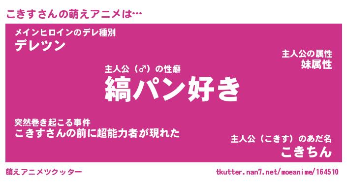 | 男性向けラノベタイトル風あだ名 | 『こきすの憂鬱』 |