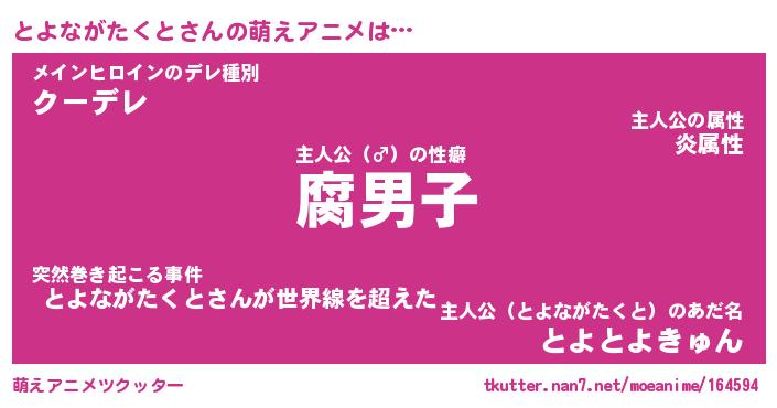 | 男性向けラノベタイトル風あだ名 | 『トヨナガタクトアートオンライン』 |