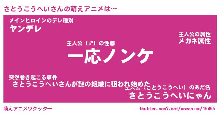 | 女子向けラノベタイトル風あだ名 | 『誰かこのさとうこうへいを説明してください! ~契約から始まるウェディング~』 |