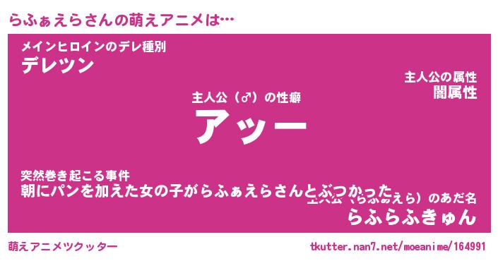 | 自動車の名前っぽいあだ名 | 『ラフティマ』『ラクア』『ラント』 |