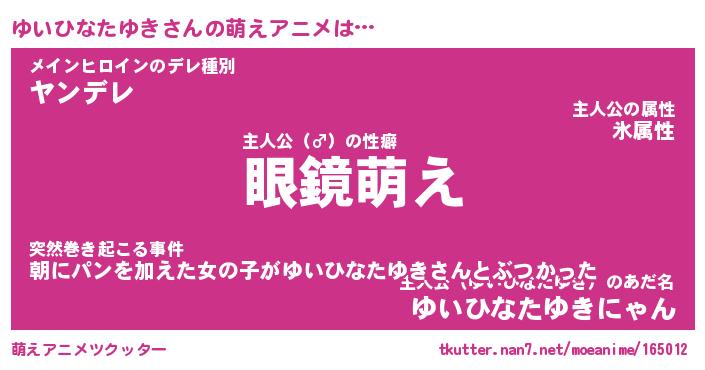 | 男性向けラノベタイトル風あだ名 | 『ゆいひなたゆきの憂鬱』 |