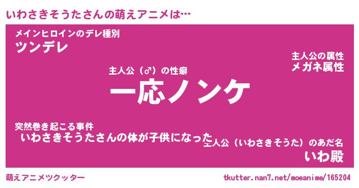 | 女子向けラノベタイトル風あだ名 | 『誰かこのいわさきそうたを説明してください! ~契約から始まるウェディング~』 |