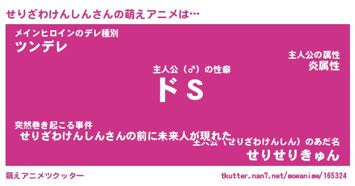 | 男性向けラノベタイトル風あだ名 | 『せりざわけんしんの憂鬱』 |