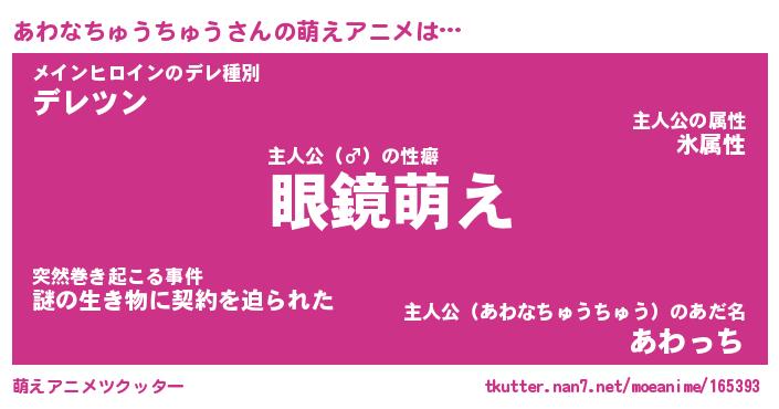 | 男性向けラノベタイトル風あだ名 | 『あわなちゅうちゅうの憂鬱』 |