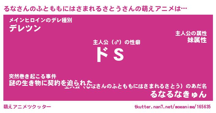 | 料理風あだ名 | 『ほっこり♪るなさんのふとももにはさまれるさとうの味噌そぼろ煮』 |